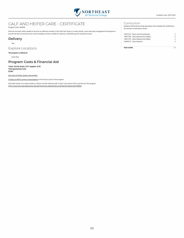 Estimates based on in-state residency. Please visit the following URL to learn more about tuition and fees for this program. https:// www. nwtc. edu / admissions-and-aid / paying-for-college / tuition-and-fees? ProgramCode = 900904