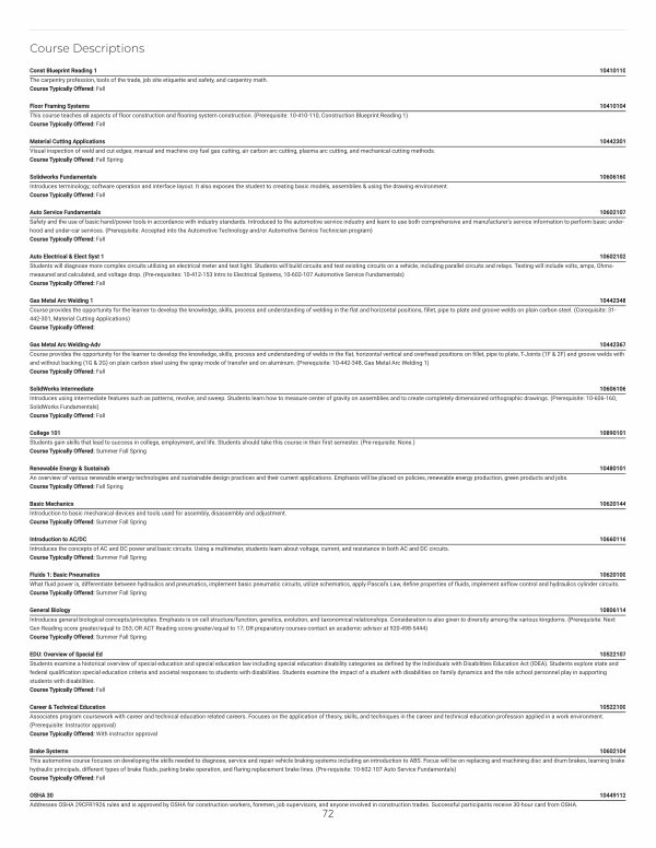 Solidworks Fundamentals 10606160 Introduces terminology; software operation and interface layout. It also exposes the student to creating basic models, assemblies & using the drawing environment. Course Typically Offered: Fall