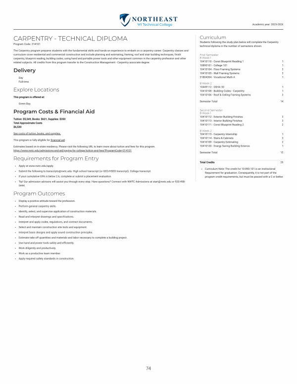 Estimates based on in-state residency. Please visit the following URL to learn more about tuition and fees for this program. https:// www. nwtc. edu / admissions-and-aid / paying-for-college / tuition-and-fees? ProgramCode = 314101