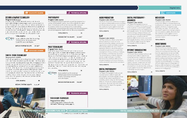 Program Code: 101117 Creative design professionals combine artistic abilities with technical knowledge to create designs used in print and electronic media. During your studies, you will create, maintain and present a professional portfolio showcasing your finest work. As a graduate of the Design and Graphic Technology program, you are positioned for a variety of careers including graphic designer, advertising specialist, digital print technician, publication designer, public relations professional, pre-press technician and web graphic designer.