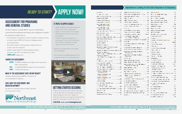 For FULL course listings and Academic PlanS, go to nwtc. edu / programs