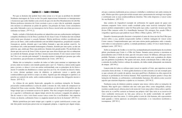 Muitas são as tentações e assaltos de todos os lados para arruinar as esperanças dos jovens , tanto no tocante a este mundo quanto para o por vir . Todavia , a única senda segura para o jovem e o idoso é viver em estrita conformidade com os princípios da lei física e moral . O caminho da obediência é o único que leva ao Céu . Os viciados no álcool e fumo , às vezes , dariam qualquer soma de dinheiro , se pudessem vencer o apetite pela condescendência que destrói o corpo e ao alma . Aqueles que não subjugam os apetites e as paixões ao controle da razão , serão condescendentes às expensas das obrigações morais e físicas . { DT 92.2 }
