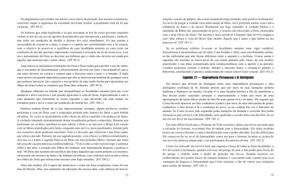 orações e ensino do púlpito , não existe meramente fogo estranho , mas positivo aviltamento . Ao invés de pregar a verdade com santa unção de Deus , ela é proferida muitas vezes sob a influência do fumo e do álcool . Realmente um fogo estranho ! A verdade bíblica e a santidade da Bíblia são apresentadas ao povo ; e orações são oferecidas a Deus , misturadas com o mau cheiro do fumo ! Tal incenso é mais aceitável a Satanás ! Que terrível engano é este ! Que ofensa à vista de Deus ! Que insulto Àquele que é santo e que habita na luz inacessível ! { DT 101.1 }