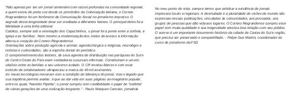 grupos de pessoas que dão vida aos lugares. O Correio Riograndense cumpriu esse