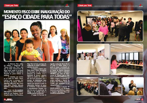 O Momento Fisco exibiu, em outubro, a inauguração do“ Espaço Cidade para Todas”, uma sala da Cidade Administrativa de Minas Gerais voltada às servidoras públicas do Estado e destinada às discussões de pautas referente as mulheres.