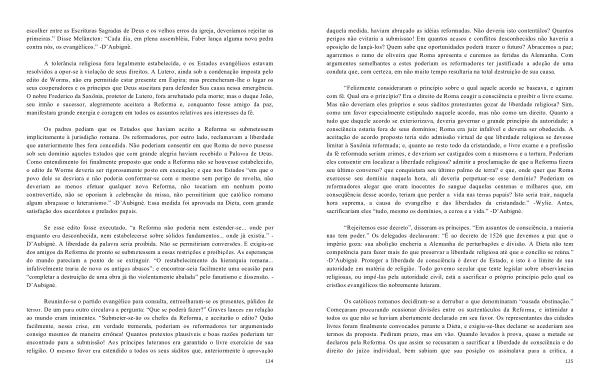 “ Felizmente consideraram o princípio sobre o qual aquele acordo se baseava , e agiram com fé . Qual era o princípio ? Era o direito de Roma coagir a consciência e proibir o livre exame . Mas não deveriam eles próprios e seus súditos protestantes gozar de liberdade religiosa ? Sim , como um favor especialmente estipulado naquele acordo , mas não como um direito . Quanto a tudo que daquele acordo se exteriorizava , deveria governar o grande princípio da autoridade ; a consciência estaria fora de seus domínios ; Roma era juiz infalível e deveria ser obedecida . A aceitação do acordo proposto teria sido admissão virtual de que liberdade religiosa se devesse limitar à Saxônia reformada ; e , quanto ao resto todo da cristandade , o livre exame e a profissão da fé reformada seriam crimes , e deveriam ser castigados com a masmorra e a tortura . Poderiam eles consentir em localizar a liberdade religiosa ? admitir a proclamação de que a Reforma fizera seu último converso ? que conquistara seu último palmo de terra ? e que , onde quer que Roma exercesse seu domínio naquela hora , ali deveria perpetuar-se esse domínio ? Poderiam os reformadores alegar que eram inocentes do sangue daquelas centenas e milhares que , em conseqüência desse acordo , teriam que perder a vida nas terras papais ? Isto seria trair , naquela hora suprema , a causa do evangelho e das liberdades da cristandade .” -Wylie . Antes , sacrificariam eles “ tudo , mesmo os domínios , a coroa e a vida .” -D ’ Aubigné .