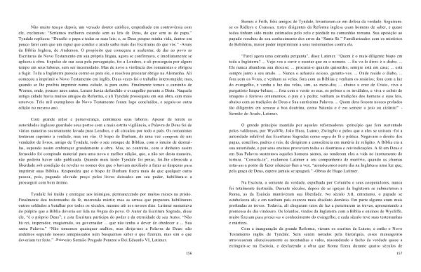 Tyndale foi traído e entregue aos inimigos , permanecendo por muitos meses na prisão . Finalmente deu testemunho da fé , morrendo mártir ; mas as armas que preparara habilitaram outros soldados a batalhar por todos os séculos , mesmo até aos nossos dias . Latimer sustentava do púlpito que a Bíblia deveria ser lida na língua do povo . O Autor da Escritura Sagrada , disse ele , “ é o próprio Deus ”; e esta Escritura participa do poder e da eternidade de seu Autor . “ Não há rei , imperador , magistrado , ou governador ... que não tenha o dever de obedecer a ... Sua santa Palavra .” “ Não tomemos quaisquer atalhos , mas dirija-nos a Palavra de Deus : não andemos segundo nossos antepassados nem busquemos saber o que fizeram , mas sim o que deveriam ter feito .” -Primeiro Sermão Pregado Perante o Rei Eduardo VI , Latimer .