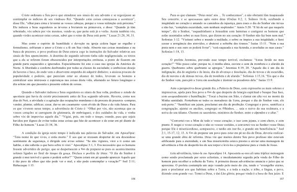 Quando o Salvador indicou a Seus seguidores os sinais de Sua volta , predisse o estado de apostasia que havia de existir precisamente antes de Seu segundo advento . Haveria , como nos dias de Noé , a atividade e a agitação das ocupações mundanas e da procura de prazeres -comprar , vender , plantar , edificar , casar , dar-se em casamento -com olvido de Deus e da vida futura . Para os que viverem nesse tempo , a advertência de Cristo é : “ Olhai por vós , não aconteça que os vossos corações se carreguem de glutonaria , de embriaguez , e dos cuidados da vida , e venha sobre vós de improviso aquele dia .” “ Vigiai , pois , em todo o tempo , orando , para que sejais havidos por dignos de evitar todas estas coisas que hão de acontecer e de estar em pé diante do Filho do homem .” Lucas 21:34 , 36 .
