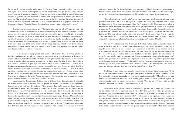 Todas as classes se congregavam nas reuniões adventistas . Ricos e pobres , grandes e humildes , achavam-se , por vários motivos , ansiosos por ouvir , por si mesmos , a doutrina do segundo advento . O Senhor detinha o espírito de oposição enquanto Seus servos explicavam as razões de sua fé . Algumas vezes o instrumento era fraco ; mas o Espírito de Deus dava poder a Sua verdade . Sentia-se a presença dos santos anjos nessas assembléias , e muitos eram diariamente acrescentados aos crentes . Ao serem repetidas as provas da próxima vinda de Cristo , vastas multidões escutavam silenciosas e extasiadas , as solenes palavras . O Céu e a Terra pareciam aproximar-se um do outro . O poder de Deus se fazia sentir em velhos e jovens , e nos de meia-idade . Os homens procuravam seus lares com louvores nos lábios , ressoando o som festivo no ar silencioso da noite . Pessoa alguma que haja assistido àquelas reuniões jamais poderá esquecer-se dessas cenas do mais profundo interesse .