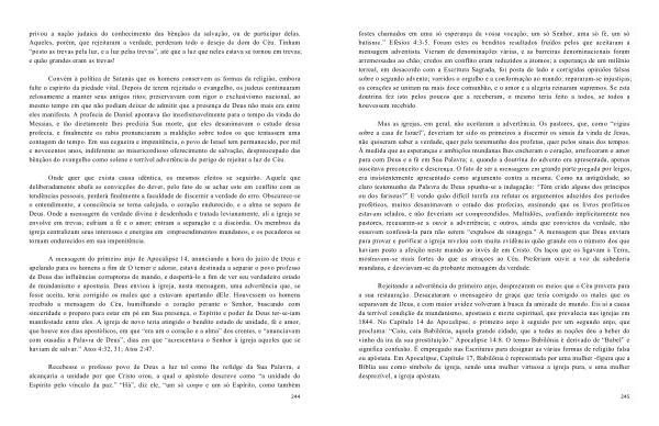 A mensagem do primeiro anjo de Apocalipse 14 , anunciando a hora do juízo de Deus e apelando para os homens a fim de O temer e adorar , estava destinada a separar o povo professo de Deus das influências corruptoras do mundo , e despertá-lo a fim de ver seu verdadeiro estado de mundanismo e apostasia . Deus enviou à igreja , nesta mensagem , uma advertência que , se fosse aceita , teria corrigido os males que a estavam apartando dEle . Houvessem os homens recebido a mensagem do Céu , humilhando o coração perante o Senhor , buscando com sinceridade o preparo para estar em pé em Sua presença , o Espírito e poder de Deus ter-se-iam manifestado entre eles . A igreja de novo teria atingido o bendito estado de unidade , fé e amor , que houve nos dias apostólicos , em que “ era um o coração e a alma ” dos crentes , e “ anunciavam com ousadia a Palavra de Deus ”, dias em que “ acrescentava o Senhor à igreja aqueles que se haviam de salvar .” Atos 4:32 , 31 ; Atos 2:47 .