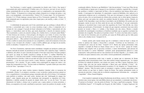 Com respeito à separação da Igreja Presbiteriana da de Roma , escreve o Dr . Guthrie : “ Há trezentos anos , nossa igreja , com uma Bíblia aberta em seu estandarte , e ostentando esta divisa - ‘ Examinai as Escrituras ’ -saiu das portas de Roma .” Faz logo a significativa pergunta : “ Saíram de Babilônia limpos ?” -O Evangelho em Ezequiel , de John Guthrie . “ A Igreja Anglicana ”, diz