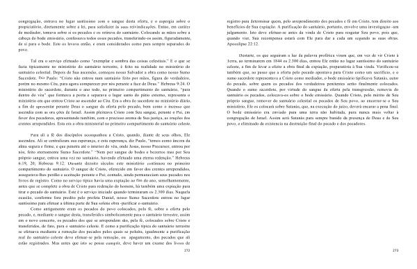 Como antigamente eram os pecados do povo colocados , pela fé , sobre a oferta pelo pecado , e , mediante o sangue desta , transferidos simbolicamente para o santuário terrestre , assim em o novo concerto , os pecados dos que se arrependem são , pela fé , colocados sobre Cristo e transferidos , de fato , para o santuário celeste . E como a purificação típica do santuário terrestre se efetuava mediante a remoção dos pecados pelos quais se poluíra , igualmente a purificação real do santuário celeste deve efetuar-se pela remoção , ou apagamento , dos pecados que ali estão registrados . Mas antes que isto se possa cumprir , deve haver um exame dos livros de