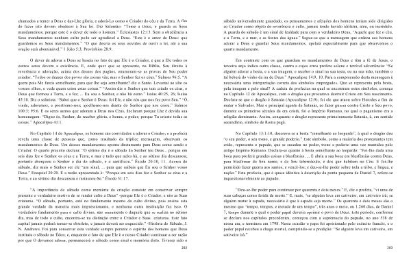 No Capítulo 14 de Apocalipse , os homens são convidados a adorar o Criador ; e a profecia revela uma classe de pessoas que , como resultado da tríplice mensagem , observam os mandamentos de Deus . Um desses mandamentos aponta diretamente para Deus como sendo o Criador . O quarto preceito declara : “ O sétimo dia é o sábado do Senhor teu Deus ... porque em seis dias fez o Senhor os céus e a Terra , o mar e tudo que neles há , e ao sétimo dia descansou ; portanto abençoou o Senhor o dia do sábado , e o santificou .” Êxodo 20:10 , 11 . Acerca do sábado , diz mais o Senhor ser ele “ um sinal , ... para que saibais que Eu sou o Senhor vosso Deus .” Ezequiel 20:20 . E a razão apresentada é : “ Porque em seis dias fez o Senhor os céus e a Terra , e ao sétimo dia descansou e restaurou-Se .” Êxodo 31:17 .