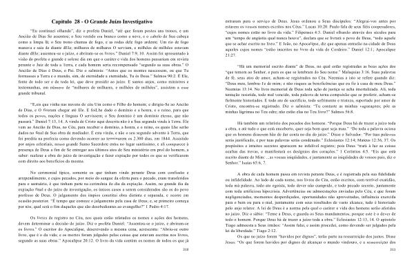 A obra de cada homem passa em revista perante Deus , e é registrada pela sua fidelidade ou infidelidade . Ao lado de cada nome , nos livros do Céu , estão escritos , com terrível exatidão , toda má palavra , todo ato egoísta , todo dever não cumprido , e todo pecado secreto , juntamente com toda artificiosa hipocrisia . Advertências ou admoestações enviadas pelo Céu , e que foram negligenciadas , momentos desperdiçados , oportunidades não aproveitadas , influência exercida para o bem ou para o mal , juntamente com seus resultados de vasto alcance , tudo é historiado pelo anjo relator . A lei de Deus é a norma pela qual o caráter e vida dos homens serão aferidos no juízo . Diz o sábio : “ Teme a Deus , e guarda os Seus mandamentos ; porque este é o dever de todo o homem . Porque Deus há de trazer a juízo toda a obra .” Eclesiastes 12:13 , 14 . O apóstolo Tiago admoesta a Seus irmãos : “ Assim falai , e assim procedei , como devendo ser julgados pela lei da liberdade .” Tiago 2:12 .
