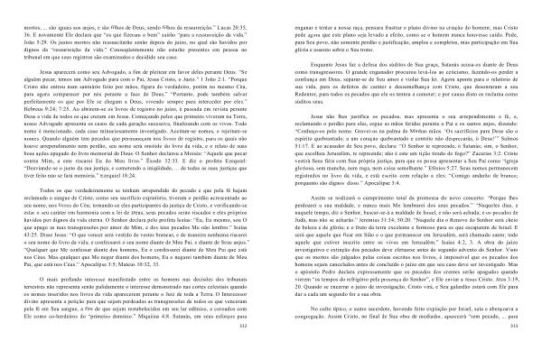 Assim se realizará o cumprimento total da promessa do novo concerto : “ Porque lhes perdoarei a sua maldade , e nunca mais Me lembrarei dos seus pecados .” “ Naqueles dias , e naquele tempo , diz o Senhor , buscar-se-á a maldade de Israel , e não será achada ; e os pecados de Judá , mas não se acharão .” Jeremias 31:34 ; 50:20 . “ Naquele dia o Renovo do Senhor será cheio de beleza e de glória ; e o fruto da terra excelente e formoso para os que escaparem de Israel . E será que aquele que ficar em Sião e o que permanecer em Jerusalém , será chamado santo ; todo aquele que estiver inscrito entre os vivos em Jerusalém .” Isaías 4:2 , 3 . A obra do juízo investigativo e extinção dos pecados deve efetuarse antes do segundo advento do Senhor . Visto que os mortos são julgados pelas coisas escritas nos livros , é impossível que os pecados dos homens sejam cancelados antes de concluído o juízo em que seu caso deve ser investigado . Mas o apóstolo Pedro declara expressamente que os pecados dos crentes serão apagados quando vierem “ os tempos do refrigério pela presença do Senhor ”, e Ele enviar a Jesus Cristo . Atos 3:19 , 20 . Quando se encerrar o juízo de investigação , Cristo virá , e Seu galardão estará com Ele para dar a cada um segundo for a sua obra .