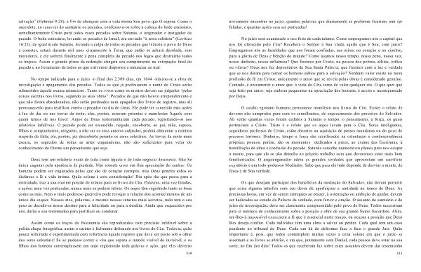 Os que desejam participar dos benefícios da mediação do Salvador , não devem permitir que coisa alguma interfira com seu dever de aperfeiçoar a santidade no temor de Deus . As preciosas horas , em vez de serem entregues ao prazer , à ostentação ou ambição de ganho , devem ser dedicadas ao estudo da Palavra da verdade , com fervor e oração . O assunto do santuário e do juízo de investigação , deve ser claramente compreendido pelo povo de Deus . Todos necessitam para si mesmos de conhecimento sobre a posição e obra de seu grande Sumo Sacerdote . Aliás , ser-lhes-á impossível exercerem a fé que é essencial neste tempo , ou ocupar a posição que Deus lhes deseja confiar . Cada indivíduo tem uma alma a salvar ou perder . Cada qual tem um caso pendente no tribunal de Deus . Cada um há de defrontar face a face o grande Juiz . Quão importante é , pois , que todos contemplem muitas vezes a cena solene em que o juízo se assentará e os livros se abrirão , e em que , juntamente com Daniel , cada pessoa deve estar na sua sorte , no fim dos dias ! Todos os que receberam luz sobre estes assuntos devem dar testemunho