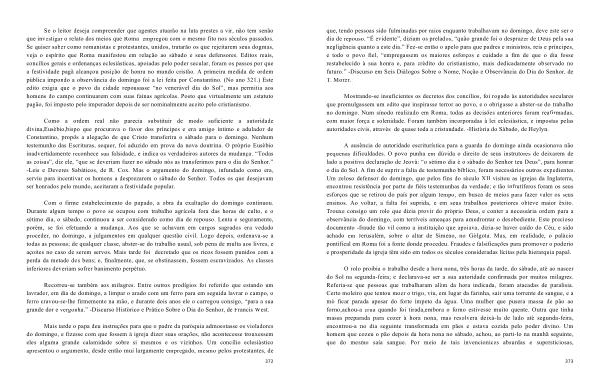Recorreu-se também aos milagres . Entre outros prodígios foi referido que estando um lavrador , em dia de domingo , a limpar o arado com um ferro para em seguida lavrar o campo , o ferro cravou-se-lhe firmemente na mão , e durante dois anos ele o carregou consigo , “ para a sua grande dor e vergonha .” -Discurso Histórico e Prático Sobre o Dia do Senhor , de Francis West .