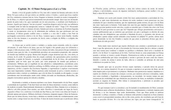 Nenhum erro aceito pelo mundo cristão fere mais audaciosamente a autoridade do Céu , nenhum se opõe mais diretamente aos ditames da razão , nenhum é mais pernicioso em seus resultados do que a doutrina moderna , que tão rapidamente ganha terreno , de que a lei de Deus não mais vigora para os homens . Toda nação tem suas leis que impõem respeito e obediência ; nenhum governo poderia existir sem elas ; e pode-se conceber que o Criador dos céus e da Terra não tenha lei para governar os seres que fez ? Suponde que clérigos preeminentes estivessem a ensinar publicamente que os estatutos que governam seu país e protegem os direitos de seus cidadãos não são obrigatórios ; que cerceiam a liberdade do povo , e , portanto , não devem ser obedecidos ; quanto tempo seriam tolerados esses homens no púlpito ? É , porém , ofensa mais grave desatender às leis dos Estados e nações do que pisar os preceitos divinos que são o fundamento de todo governo ?