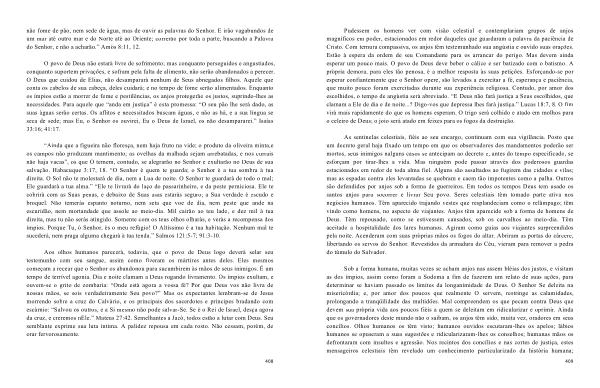 O povo de Deus não estará livre de sofrimento ; mas conquanto perseguidos e angustiados , conquanto suportem privações , e sofram pela falta de alimento , não serão abandonados a perecer . O Deus que cuidou de Elias , não desamparará nenhum de Seus abnegados filhos . Aquele que conta os cabelos de sua cabeça , deles cuidará ; e no tempo de fome serão alimentados . Enquanto os ímpios estão a morrer de fome e pestilências , os anjos protegerão os justos , suprindo-lhes as necessidades . Para aquele que “ anda em justiça ” é esta promessa : “ O seu pão lhe será dado , as suas águas serão certas . Os aflitos e necessitados buscam águas , e não as há , e a sua língua se seca de sede ; mas Eu , o Senhor os ouvirei , Eu o Deus de Israel , os não desampararei .” Isaías 33:16 ; 41:17 .