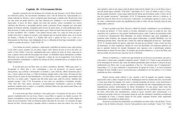 O mar é açoitado com fúria . Ouvese o sibilar do furacão , semelhante à voz de demônios na missão de destruir . A Terra inteira se levanta , dilatando-se como as ondas do mar . Sua superfície está a quebrar-se . Seu próprio fundamento parece ceder . Cadeias de montanhas estão a revolver-se . Desaparecem ilhas habitadas . Os portos marítimos que , pela iniqüidade , se tornaram como Sodoma , são tragados pelas águas enfurecidas . A grande Babilônia veio em lembrança perante Deus , “ para lhe dar o cálice do vinho da indignação da Sua ira .” Apocalipse 16:19 , 21 . Grandes pedras de saraiva , cada uma “ do peso de um talento ”, estão a fazer sua obra de destruição . As mais orgulhosas cidades da Terra são derribadas . Os suntuosos palácios em que os grandes homens do mundo dissiparam suas riquezas com a glorificação própria , desmoronam-se diante de seus olhos . As paredes das prisões fendem-se , e o povo de Deus , que estivera retido em cativeiro por causa de sua fé , é libertado .