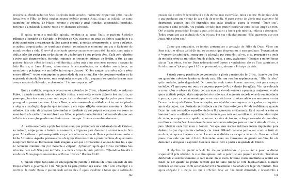 E agora , perante a multidão agitada , revelam-se as cenas finais -o paciente Sofredor trilhando o caminho do Calvário , o Príncipe do Céu suspenso na cruz ; os altivos sacerdotes e a plebe zombeteira a escarnecer de Sua agonia mortal , as trevas sobrenaturais ; a Terra a palpitar , as pedras despedaçadas , as sepulturas abertas , assinalando o momento em que o Redentor do mundo rendeu a vida . O terrível espetáculo aparece exatamente como foi . Satanás , seus anjos e súditos não têm poder para se desviarem do quadro que é a sua própria obra . Cada ator relembra a parte que desempenhou . Herodes , matando as inocentes crianças de Belém , a fim de que pudesse destruir o Rei de Israel ; a vil Herodias , sobre cuja alma criminosa repousa o sangue de João Batista ; o fraco Pilatos , subserviente às circunstâncias ; os soldados zombadores ; os sacerdotes e príncipes , e a multidão furiosa que clamou : “ O Seu sangue caia sobre nós e sobre nossos filhos !” -todos contemplam a enormidade de seu crime . Em vão procuram ocultar-se da majestade divina de Seu rosto , mais resplandecente que o Sol , enquanto os remidos lançam suas coroas aos pés do Salvador , exclamando : “ Ele morreu por mim !”