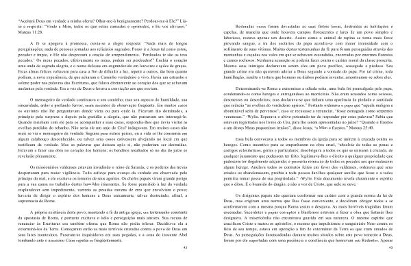 Reiteradas vezes foram devastadas as suas férteis terras , destruídas as habitações e capelas , de maneira que onde houvera campos florescentes e lares de um povo simples e laborioso , restava apenas um deserto . Assim como o animal de rapina se torna mais feroz provando sangue , a ira dos sectários do papa acendia-se com maior intensidade com o sofrimento de suas vítimas . Muitas destas testemunhas da fé pura foram perseguidas através das montanhas e caçadas nos vales em que se achavam escondidas , encerradas por enormes florestas e cumes rochosos . Nenhuma acusação se poderia fazer contra o caráter moral da classe proscrita . Mesmo seus inimigos declaravam serem eles um povo pacífico , sossegado e piedoso . Seu grande crime era não quererem adorar a Deus segundo a vontade do papa . Por tal crime , toda humilhação , insulto e tortura que homens ou diabos podiam inventar , amontoaram-se sobre eles .