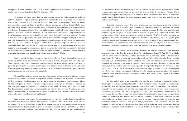 “ O espírito de Huss , nesta fase de sua carreira , parece ter sido cenário de doloroso conflito . Embora a igreja estivesse procurando fulminá-lo com seus raios , não havia ele renegado a autoridade dela . A igreja de Roma era ainda para ele a esposa de Cristo , e o papa o representante e vigário de Deus . O que Huss estava a guerrear era o abuso da autoridade , não o princípio em si mesmo . Isto acarretou terrível conflito entre as convicções de seu entendimento e os ditames de sua consciência . Se a autoridade era justa e infalível , como cria que fosse , como poderia acontecer achar-se obrigado a desobedecerlhe ? Obedecer , compreendia-o ele , significava pecar ; mas por que a obediência a uma igreja infalível levaria a tal situação ? Era este o problema que não podia resolver ; esta a dúvida que o torturava sempre e sempre . A solução que mais justa se lhe afigurava , era que havia acontecido novamente , como já antes , nos dias do Salvador , que os sacerdotes da igreja se tinham tornado pessoas ímpias e estavam usando da autoridade lícita para fins ilícitos . Isto o levou a adotar para sua própria orientação e para guia daqueles a quem pregava , a máxima de que os preceitos das Escrituras , comunicados por meio do entendimento , devem reger a consciência ; em outras palavras , de que Deus , falando na Bíblia , e não a igreja falando pelo sacerdócio , é o único guia infalível .” -Wylie .