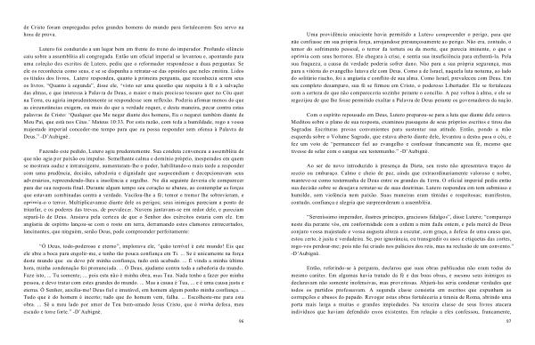 “ Ó Deus , todo-poderoso e eterno ”, implorava ele , “ quão terrível é este mundo ! Eis que ele abre a boca para engolir-me , e tenho tão pouca confiança em Ti . ... Se é unicamente na força deste mundo que eu devo pôr minha confiança , tudo está acabado . ... É vinda a minha última hora , minha condenação foi pronunciada . ... Ó Deus , ajudame contra toda a sabedoria do mundo . Faze isto , ... Tu somente ; ... pois esta não é minha obra , mas Tua . Nada tenho a fazer por minha pessoa , e devo tratar com estes grandes do mundo . ... Mas a causa é Tua , ... e é uma causa justa e eterna . Ó Senhor , auxilia-me ! Deus fiel e imutável , em homem algum ponho minha confiança . ... Tudo que é do homem é incerto ; tudo que do homem vem , falha . ... Escolheste-me para esta obra . ... Sê a meu lado por amor de Teu bem-amado Jesus Cristo , que é minha defesa , meu escudo e torre forte .” -D ’ Aubigné .
