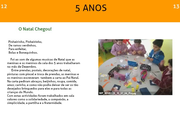 Foi ao som de algumas musicas de Natal que as meninas e os meninos da sala dos 5 anos trabalharam no mês de Dezembro.
