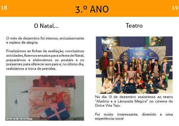 Finalizámos as fichas de avaliação, concluímos atividades, fizemos ensaios para a festa de Natal, preparámos e elaborámos os postais e os presentes para oferecer aos pais e, no último dia, realizámos a troca de prendas.
