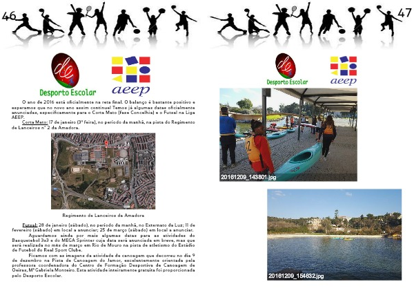 O ano de 2016 está oficialmente na reta final. O balanço é bastante positivo e esperamos que no novo ano assim continue! Temos já algumas datas oficialmente anunciadas, especificamente para o Corta Mato (fase Concelhia) e o Futsal na Liga AEEP.