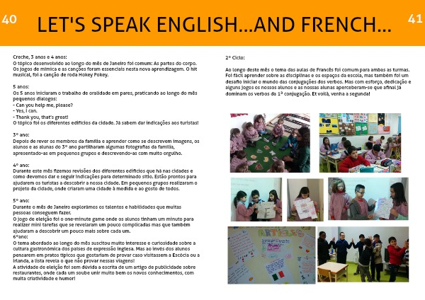 Ao longo deste mês o tema das aulas de Francês foi comum para ambas as turmas. Foi fácil aprender sobre as disciplinas e os espaços da escola, mas também foi um desafio iniciar o mundo das conjugações dos verbos. Mas com esforço, dedicação e alguns jogos os nossos alunos e as nossas alunas aperceberam-se que afinal já dominam os verbos da 1ª conjugação. Et voilà, venha a segunda!
