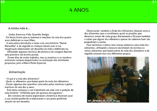 A educadora introduziu o tema com uma história “Mamã Maravilha” e de seguida as crianças deram asas á sua imaginação elaborando um desenho da mãe e definiram-na.