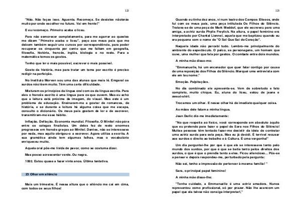 " No que respeita ao físico, você corresponde em absoluto àquilo que eu pretendo para fazer o papel de Sara nos Filhos do Silêncio! Muitas pessoas têm tentado fazer-me desistir da ideia de contratar uma actriz surda para esta peça. Mas eu já decidi. É terrível recusar aos surdos o direito ao trabalho e à Cultura. É uma vergonha!"