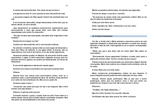 No entanto é instintiva. Ignoro ainda se serei capaz de interpretar a Sara dos Filhos do Silêncio. É um papel difícil. É preciso não só representá-lo, mas vivê-lo do interior. E eu não tenho experiência.