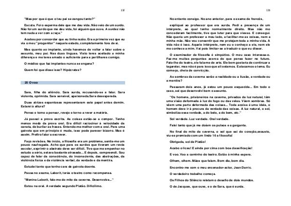 Sara, filha do silêncio. Sara surda, recusando-se a falar. Sara violenta, oprimida. Sara sensível, apaixonada. Sara desesperada.