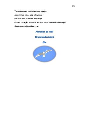 Tanto escrevo como falo por gestos. As minhas mãos são bilingues. Ofereço-vos a minha diferença. O meu coração não está surdo a nada neste mundo duplo. Custa-me muito deixar-vos.
