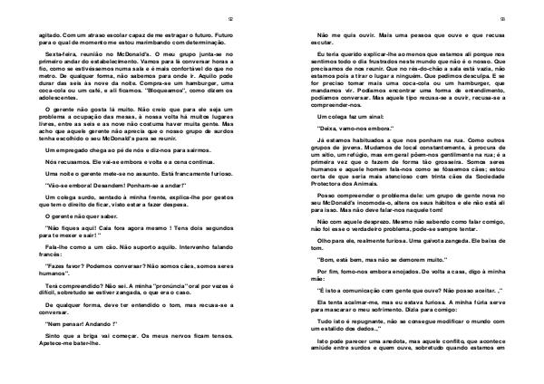 Eu teria querido explicar-lhe ao menos que estamos ali porque nos sentimos todo o dia frustrados neste mundo que não é o nosso. Que precisamos de nos reunir. Que no rés-do-chão a sala está vazia, não estamos pois a tirar o lugar a ninguém. Que pedimos desculpa. E se for preciso tomar mais uma coca-cola ou um hamburger, que mandamos vir. Podíamos encontrar uma forma de entendimento, podíamos conversar. Mas aquele tipo recusa-se a ouvir, recusa-se a compreender-nos.