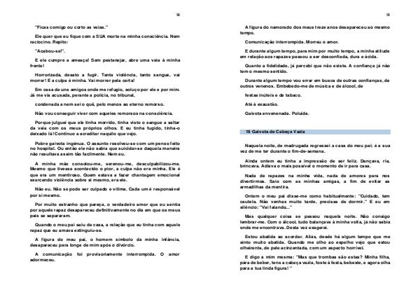 condenada a nem sei o quê, pelo menos ao eterno remorso. Não vou conseguir viver com aqueles remorsos na consciência.