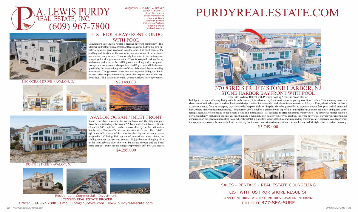 Residential- Commercial- Investment LICENSED REAL ESTATE BROKER Office: 609-967-7800- Email: Info @ purdyre. com- www. purdyrealestate. com