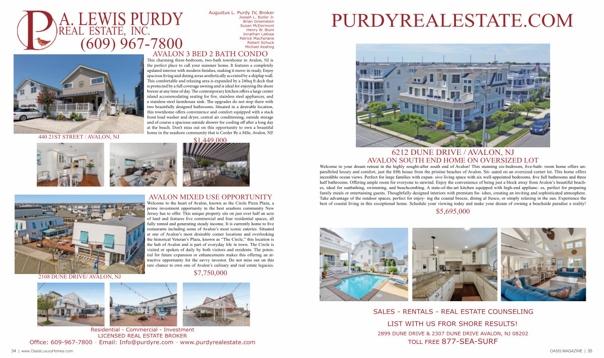Residential- Commercial- Investment LICENSED REAL ESTATE BROKER Office: 609-967-7800- Email: Info @ purdyre. com- www. purdyrealestate. com