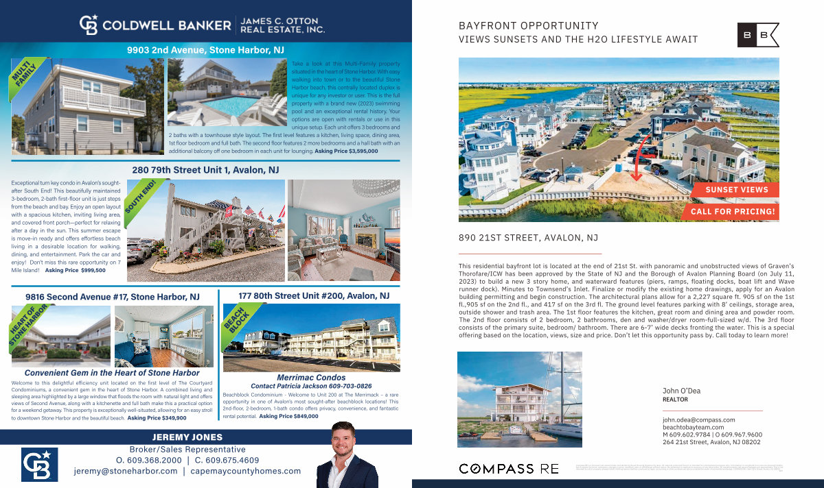 john. odea @ compass. com beachtobayteam. com M 609.602.9784 | O 609.967.9600 264 21st Street, Avalon, NJ 08202