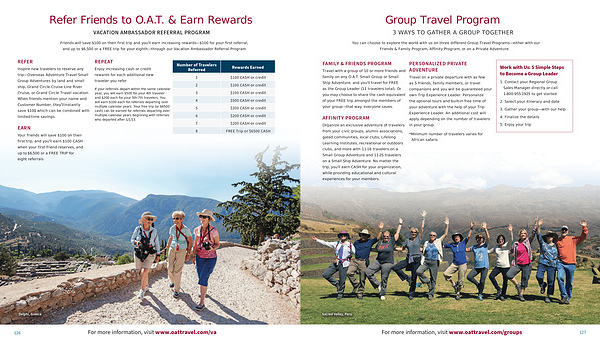 Inspire new travelers to reserve any trip — Overseas Adventure Travel Small Group Adventures by land and small ship , Grand Circle Cruise Line River Cruise , or Grand Circle Travel vacation . When friends mention your name and Customer Number , they ’ ll instantly save $ 100 , which can be combined with limited-time savings .