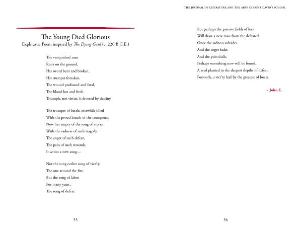 The Young Died Glorious Ekphrastic Poem inspired by The Dying Gaul ( c . 220 B . C . E .)