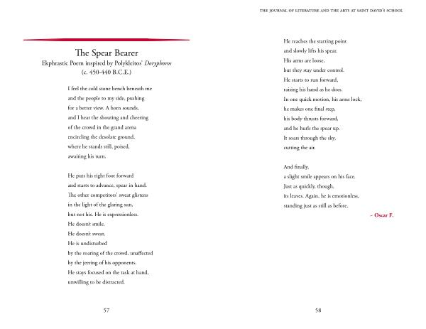 The Spear Bearer Ekphrastic Poem inspired by Polykleitos ’ Doryphoros ( c . 450-440 B . C . E .)
