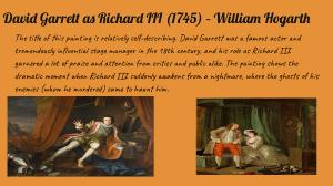 The title of this painting is relatively self-describing . David Garrett was a famous actor and tremendously influential stage manager in the 18th century , and his role as Richard III garnered a lot of praise and attention from critics and public alike . The painting shows the dramatic moment when Richard III suddenly awakens from a nightmare , where the ghosts of his enemies ( whom he murdered ) came to haunt him .