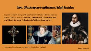 In 2016 , to mark the 400th anniversary of bard ’ s death , famous Italian fashion house " Valentino " dedicated it ' s theatrical Fall 2016 Haute Couture Collection to William Shakespeare .