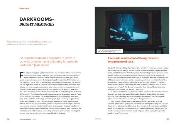 The infamous Paragraph 175 gave generations of gay men a name : 175 ! was synonymous with homosexual . The total ban on homosexuality remained in place until 1969 . But it would take another 25 years for Paragraph 175 to completely disappear from the German Civil Code in 1994 . This paragraph did not continue to exist out of oversight but was , over the decades , re-examined , recertified and reconfirmed . During the post-war years , 100,000 men were brought to trial in West Germany alone . Paragraph 175 allowed authorities to intercept and confiscate love letters and submit them to court as evidence and to install cameras behind mirrors , encroaching on the privacy of these men , revealing their intimate lives , and exposing extremely personal details to the public .