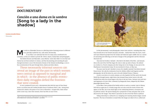 My work as a filmmaker focuses on collecting stories featuring women in different eras , generally marked by war , exile and / or dictatorship . In my films I use materials that were for many years considered to be secondary , as they are related to private life : letters , diaries , family films and photographs .