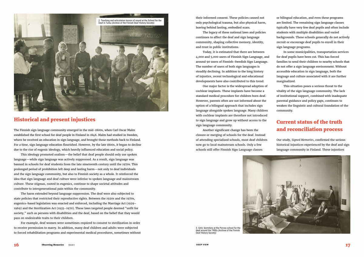 Our study, Signed Memories, confirmed the serious historical injustices experienced by the deaf and sign language community in Finland. These injustices